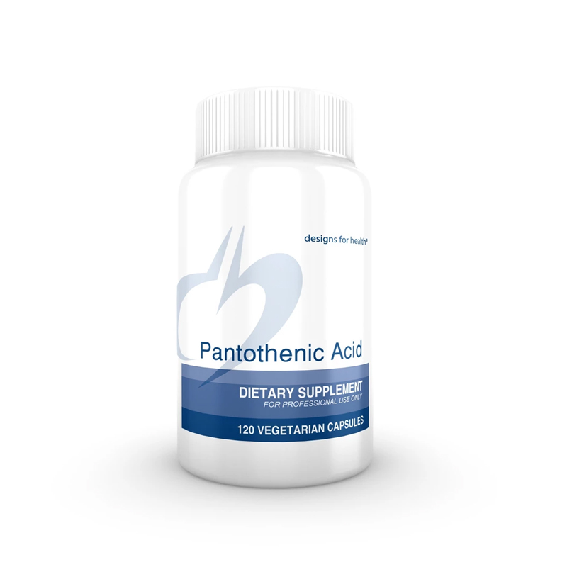 Pantothenic acid is water-soluble vitamin B5. After absorption, it is converted to pantethine. Pantothenic acid is a component of coenzyme A, which is required to generate energy from fats, carbohydrates, and protein. CoA is also required to synthesize fats, cholesterol, acetylcholine, melatonin and steroid hormones. Made with non-GMO ingredients.