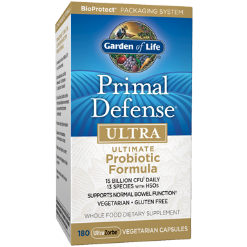 Primal Defense® ULTRA delivers all the benefits of Primal Defense but differs in that it has 13 species of beneficial cultures with the addition of Saccharomyces boulardii, providing a 15 billion live cell count in three capsules per day.